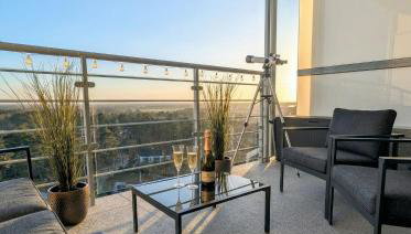 Die Unterkunft Royal Suite, 50 meters to Beach, 10th Floor, Panoramic View, Parking, Porta Mare Active & Spa besticht durch Seeblick und Übernachtungsmöglichkeiten mit einem eigenen Strandbereich und einem Balkon, ungefähr 80 m von Strand Plaża w Dziwnówku entfernt.