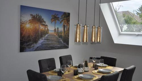 Gelegen in Eggenstein, nur 13 km von Schloss Karlsruhe entfernt, bietet die Unterkunft Neubau, Luxus, 3-Zi Wohn für KaffeeGenießer Übernachtungsmöglichkeiten mit einem Restaurant, Wassersportmöglichkeiten und kostenlosem WLAN.