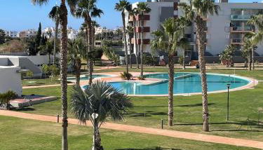 Die Unterkunft Bonito y tranquilo piso en Almerimar, die über einen saisonalen Außenpool, einen Garten und eine Terrasse verfügt, bietet Übernachtungsmöglichkeiten in Almerimar mit kostenlosem WLAN und Poolblick.