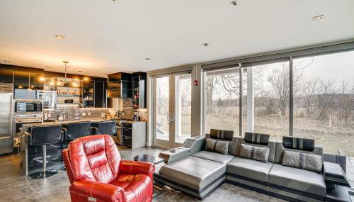 Gelegen in Elkhart Lake, in der Region Wisconsin, bietet die Unterkunft Road America Retreat Modern Villa with Garage! eine Veranda / Patio.