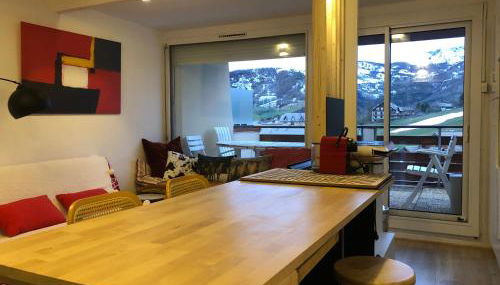 Die Unterkunft Les alpages - lit queen size - centre station verfügt über Poolblick und Übernachtungsmöglichkeiten mit einem Balkon und einer Kaffeemaschine, ungefähr 32 km von Col de la Bonette entfernt.