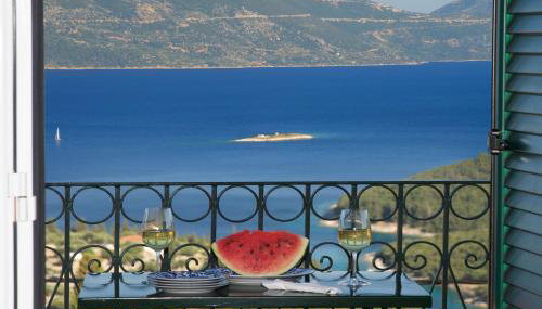 Die geräumigen Zimmer und Suiten sind individuell mit schmiedeeisernen Betten, stilvollen Möbeln und orthopädischen Matratzen eingerichtet. Jedes verfügt über eine voll ausgestattete Küchenzeile und einen großen Balkon mit Blick auf das Ionische Meer, die Insel Ithaka und den umliegenden Zypressenwald. Im Bad liegen kostenfreie Pflegeprodukte für Sie bereit.