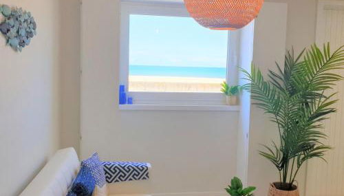 Die Unterkunft The Shore @ Atlantic Beach - Waterfront Beach House, Tiny Pool, Terrasse besticht durch Meerblick und Übernachtungsmöglichkeiten mit einem Außenpool und einer Veranda / Patio, ungefähr 200 m von Strand Rua 37 entfernt.