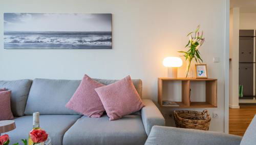 Diese Ferienwohnung mit einer Terrasse und Meerblick hat 2 Schlafzimmer, ein Wohnzimmer, einen TV, eine gut ausgestattete Küche mit einem Kühlschrank und einem Geschirrspüler sowie 1 Badezimmer mit einer Dusche. In dieser Ferienwohnung werden Handtücher und Bettwäsche zur Verfügung gestellt.