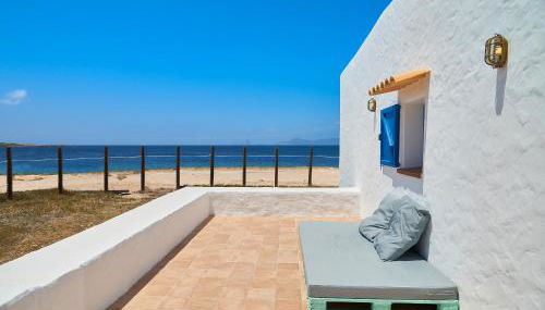 Dieses klimatisierte Ferienhaus in La Savina liegt direkt am Strand und verfügt über eine möblierte Terrasse mit Meerblick. Das Casita Del Puerto Formentera Passport bietet einen Sitzbereich mit 2 Schlafsofas und einem Flachbild-TV.