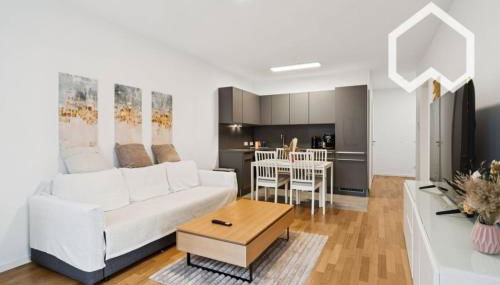 Diese Ferienwohnung ist ausgestattet mit 1 Schlafzimmer, einer Küche mit einem Kühlschrank und einem Geschirrspüler, einem Flachbild-TV, einem Sitzbereich und 1 Badezimmer, ausgestattet mit einer Dusche. In dieser Ferienwohnung werden Handtücher und Bettwäsche zur Verfügung gestellt.