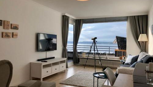 Diese Ferienwohnung mit einer Terrasse und Meerblick bietet 1 Schlafzimmer, ein Wohnzimmer, einen Flachbild-TV, eine gut ausgestattete Küche mit einem Kühlschrank und einem Ofen sowie 1 Badezimmer mit einer Dusche. In dieser Ferienwohnung werden Handtücher und Bettwäsche angeboten.
