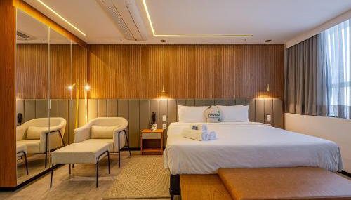 Die Unterkunft Roomo Transamerica Goiânia Marista Urbà, die 5,7 km von Busbahnhof Goiania entfernt gelegen ist, bietet Übernachtungsmöglichkeiten mit einem Fitnesscenter, einer Bar und einer rund um die Uhr besetzten Rezeption für Ihren Komfort.
