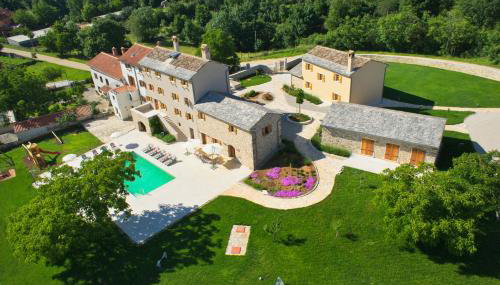 Die Unterkunft Villa Poropati, Grožnjan, Istria - Luxury Countryside Estate for up to 19 persons - Large pool of 80m2 with kids section, die über einen Garten, eine Terrasse und Grillmöglichkeiten verfügt, bietet Übernachtungsmöglichkeiten in Grožnjan mit kostenlosem WLAN und Poolblick.