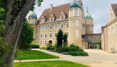 Die Unterkunft Napoleonsuite auf Schloß Hürbel verfügt über Gartenblick und Übernachtungsmöglichkeiten mit einem Balkon und einer Kaffeemaschine, ungefähr 38 km von Hauptbahnhof Ulm entfernt.