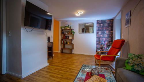 Diese Ferienwohnung besteht aus 1 Schlafzimmer, einem Wohnzimmer, einer voll ausgestatteten Küche mit einem Kühlschrank und einer Kaffeemaschine sowie 1 Badezimmer mit einer Dusche. In dieser Ferienwohnung werden Handtücher und Bettwäsche angeboten.
