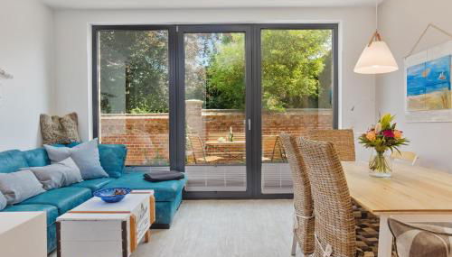 Die Unterkunft Meeresstern, die über ein Fitnesscenter, einen Garten und eine Terrasse verfügt, bietet Übernachtungsmöglichkeiten in Heiligenhafen mit kostenlosem WLAN und Stadtblick.