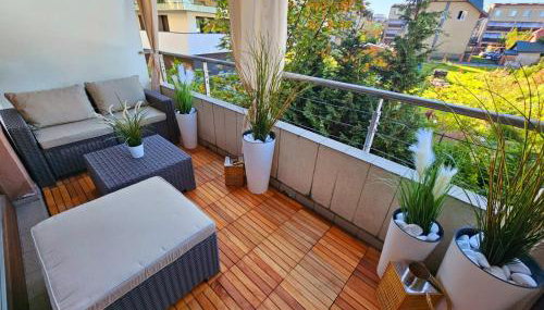 Diese Ferienwohnung bietet einen Balkon, 1 Schlafzimmer, ein Wohnzimmer und eine gut ausgestattete Küchenzeile. Es gibt einen Flachbild-TV.