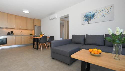 Die Unterkunft Aelion Eco Apartments bietet ihren Gästen eine Terrasse, Stadtblick, einen Sitzbereich, einen Flachbild-TV, eine voll ausgestattete Küche mit einem Kühlschrank und einem Ofen sowie ein eigenes Badezimmer mit einer Dusche und einem Haartrockner. Es gibt eine Herdplatte sowie eine Kaffeemaschine.