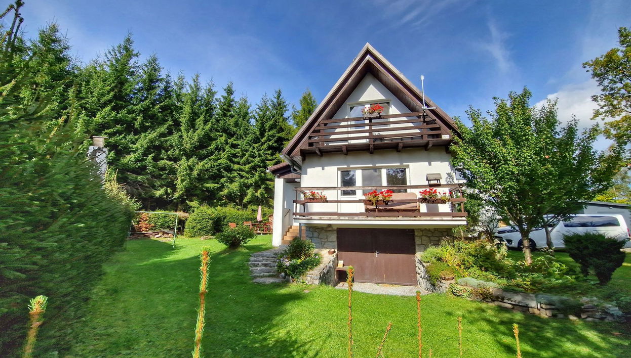1 km von Lipno: Gemütliches, freistehendes Landhaus "Hůrka", auf 2 Stockwerken, Baujahr 1990, renoviert im Jahre 2022. Am Ortsrand, 2 km vom Zentrum von Černá v Pošumaví, ruhige, sonnige Lage, direkt am Waldrand, 600 m vom See. Zur Alleinbenutzung: Grundstück 600 m2, Garten. Gartenmöbel, Grill, Feuerstelle. Im Hause: Einstellraum für Fahrräder, Skiraum, Zentralheizung, Waschmaschine. Parkplatz (für 2 Autos) auf dem Grundstück. Einkaufsgeschäft 2 km, Einkaufszentrum 6 km, Restaurant 500 m, Bushaltestelle "Černá v Pošumaví" 1.3 km, Bahnstation "Černá v Pošumaví", Freibad 12 km, Hallenbad 12 km, Strandbad 600 m. Golfplatz (18 Loch) 30 km, Wanderwege ab Haus, Radweg, Langlaufloipe 50 m. Nahe gelegene Sehenswürdigkeiten: Muzeum Adalberta Schtiftra 5.5 km, Aquapark Frymburk 13 km, Aquaworld Lipno 20 km, Marina Lipno, bobová dráha, lanový park 20 km, Bikepark Lipno 20 km, Stezka korunami stromů 20 km, Lesní hřiště Království lesa (Lipno) 20 km. Bekannte Skigebiete sind gut erreichbar: Frymburk 13 km, Lipno nad Vltavou 20 km, Hochficht 26 km, Sternstein 45 km, Mitterdorf 52 km. Bekannte Seen in der Umgebung sind gut erreichbar: Lipenské jezero 600 m. Wandergebiete: Český Krumlov (UNESCO) 24 m, Klášter Zlatá koruna, Rožmberk 30 m, Vítkův Kámen 36 m. Bitte beachten: Angeln (mit Bewilligung).
