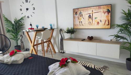 Diese Ferienwohnung mit Klimaanlage besteht aus 1 Schlafzimmer, einem Wohnzimmer, einer voll ausgestatteten Küche mit einem Kühlschrank und einer Kaffeemaschine sowie 1 Badezimmer mit einer Dusche und kostenlosen Pflegeprodukten. In dieser Ferienwohnung werden Handtücher und Bettwäsche angeboten.
