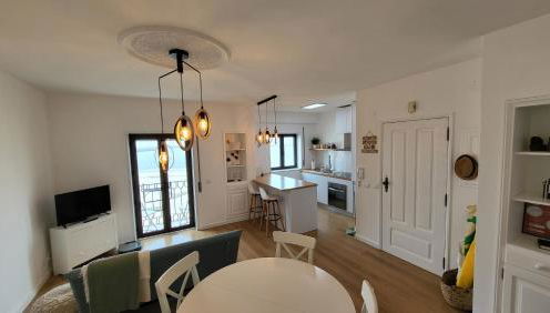 Diese Ferienwohnung mit einer Terrasse und Meerblick bietet 1 Schlafzimmer, ein Wohnzimmer, einen Flachbild-TV, eine gut ausgestattete Küche mit einem Kühlschrank und einem Geschirrspüler sowie 1 Badezimmer mit einer Dusche. In dieser Ferienwohnung werden Handtücher und Bettwäsche angeboten.