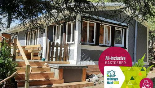 Die Unterkunft Ferienhaus Allzunah, die über einen Garten und eine Terrasse verfügt, bietet Übernachtungsmöglichkeiten in Ilmenau mit kostenlosem WLAN und Gartenblick.