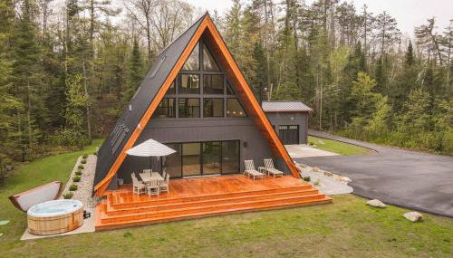 TreeTops Ayframe, Supersized AFrame on the River with Hot Tub