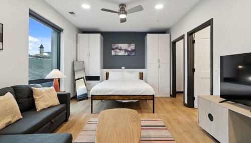 Die Unterkunft CozySuites Mass with parking lounge & roof deck #40, die in Indianapolis gelegen ist, 2,5 km von Lucas Oil Stadion und 8,8 km von Rennstrecke Indianapolis Motor Speedway entfernt, besticht durch kostenloses WLAN und eine Klimaanlage.