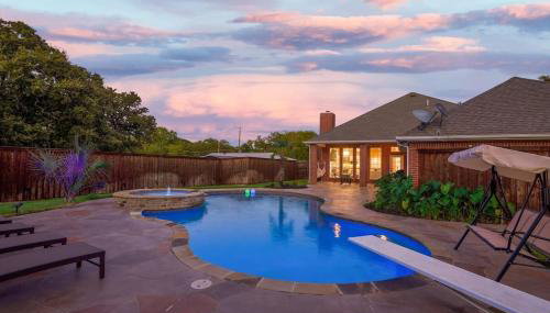 Die Unterkunft Impressive 5BR 3,5BA Holiday Home with Pool, Game Room & Cinema Room mit einem Casino ist gelegen in Irving, 15 km von Freizeitpark Zero Gravity und 15 km von Freizeitpark Six Flags Over Texas sowie 17 km von AT&T Stadium entfernt. Dieses Ferienhaus hat einen eigenen Pool, einen Garten und einen kostenlosen Privatparkplatz.