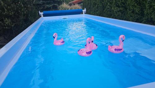 In der Unterkunft Mazurska Tajemnica 3 - Domek D gibt es einen Außenpool und eine Terrasse.