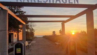 Die Unterkunft Fewo Wellenreiter Usedom 200 m zum Strand mit Balkon Parkplatz Wlan besticht durch Gartenblick und Übernachtungsmöglichkeiten mit einem Balkon und einem Wasserkocher, ungefähr 400 m von Strand Karlshagen entfernt.