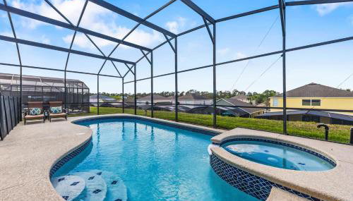 Gelegen in Kissimmee, bietet die Unterkunft 7BDM Prvt Pool Villa - Gated Resort 10min to Disney Übernachtungsmöglichkeiten mit kostenlosem WLAN, einer Klimaanlage, einem Fitnesscenter und Zugang zu einem Garten mit einem Außenpool.