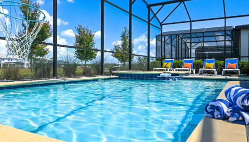 Gelegen in Kissimmee, bietet die Unterkunft Stunning 6BR Lakeview at Storey Lake next to Disney - 2929 Übernachtungsmöglichkeiten mit kostenlosem WLAN, einer Klimaanlage, einem Fitnesscenter und Zugang zu einem Garten mit einem Außenpool. Dieses Ferienhaus verfügt außerdem über einen eigenen Pool.