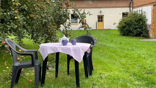 Die Unterkunft Gemütliches Haus max 6 Personen 2Schlafzimmer 1Schlafsofa besticht durch Gartenblick und Übernachtungsmöglichkeiten mit einem eigenen Strandbereich, ungefähr 19 km von Bürgersaal Waren entfernt.