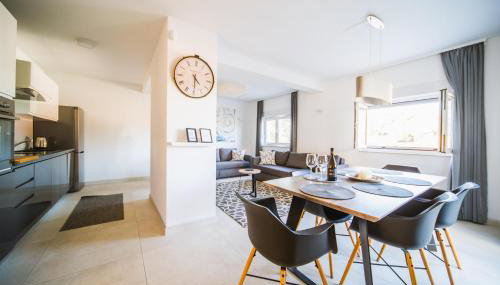 Die Unterkunft Apartmani Teuta bietet ihren Gästen eine Terrasse, Meerblick, einen Sitzbereich, einen Satelliten Flachbild-TV, eine voll ausgestattete Küche mit einem Kühlschrank und einem Geschirrspüler sowie ein eigenes Badezimmer mit einer Dusche und einem Haartrockner. Es gibt einen Ofen, eine Herdplatte und einen Toaster sowie eine Kaffeemaschine und einen Wasserkocher.