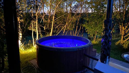Szarejkowe Wzgórza całoroczny domek z balią na tarasie