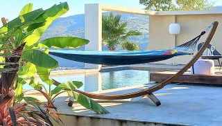 Die Unterkunft Luxueux appartement dans propriété contemporaine, jardin privatif, piscine, die über einen saisonalen Außenpool, einen Garten und einen eigenen Strandbereich verfügt, bietet Übernachtungsmöglichkeiten in La Roquette-sur-Siagne mit kostenlosem WLAN und Bergblick.