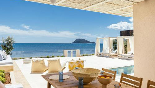 Die Unterkunft Salty Angel Sea Front Villa, die über einen Außenpool, einen Garten und eine Terrasse verfügt, bietet Übernachtungsmöglichkeiten in Laganas mit kostenlosem WLAN und Meerblick.