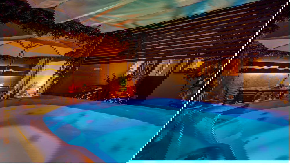 Nutz folgende Freizeiteinrichtung: Whirlpool. Du kannst aber auch den schönen Ausblick von folgenden Punkten genießen: Terrasse und Garten.