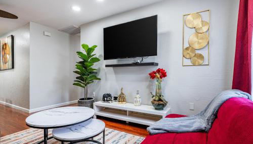 Dieses Ferienhaus mit 1 Schlafzimmer bietet den Gästen Flachbild-TV, eine Klimaanlage und ein Wohnzimmer. Die Unterkunft ist ausgestattet mit einer Küche.