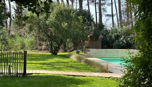 Die Unterkunft Villa Sophie, die über einen saisonalen Außenpool, einen Garten und eine Gemeinschaftslounge verfügt, bietet Übernachtungsmöglichkeiten in Lanton mit kostenlosem WLAN und Poolblick.