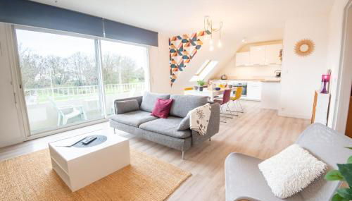 Gelegen in Larmor-Plage, 1,1 km von Strand Plage de Port Maria, 5,3 km von Football Club Lorient und 8,4 km von Bahnhof Lorient entfernt, bietet die Unterkunft Beau T3 Centre-ville & Plage à pied par Groom Übernachtungsmöglichkeiten mit einem Balkon und kostenlosem WLAN.