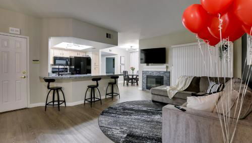 Weniger als 9 km von Stratosphere Tower und 10 km von Forum Shops im Caesars Palace entfernt gelegen bietet die Unterkunft 6 Mi to Vegas Strip City-View Gem with Pool Access kostenloses WLAN und eine Bar. Gäste profitieren von einem Balkon und einem Außenpool.