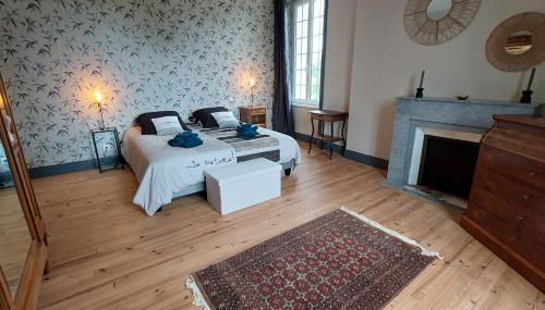 Die Unterkunft Gîte d'exception avec piscine chauffée pour 12 personnes - Cantal verfügt über 5 Schlafzimmer, 3 Badezimmer mit einem Haartrockner, ein Wohnzimmer und eine Küche mit einem Kühlschrank.