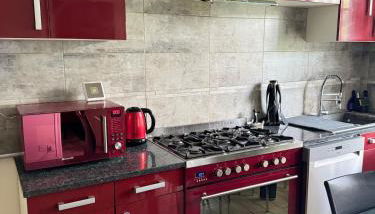 Diese Ferienwohnung ist versehen mit 1 Schlafzimmer, einem Flachbild-TV und einer voll ausgestatteten Küche, die den Gästen einen Kühlschrank, einen Geschirrspüler, eine Waschmaschine, einen Ofen und eine Mikrowelle bietet. In dieser Ferienwohnung werden Handtücher und Bettwäsche angeboten.