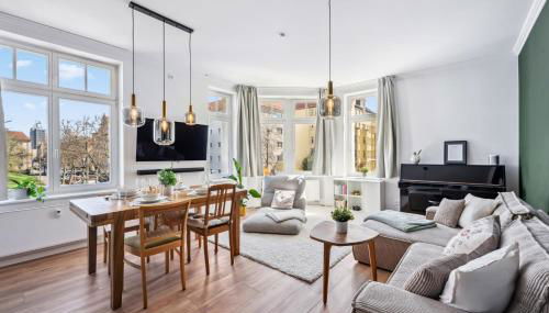Im Bezirk Süd in Leipzig, in der Nähe von Panometer Leipzig gelegen, verfügt die Unterkunft TRABER APARTMENTS 1 SZ Balkon 2 Badezimmer Südvorstadt über eine Gemeinschaftslounge, kostenloses WLAN und eine Waschmaschine.