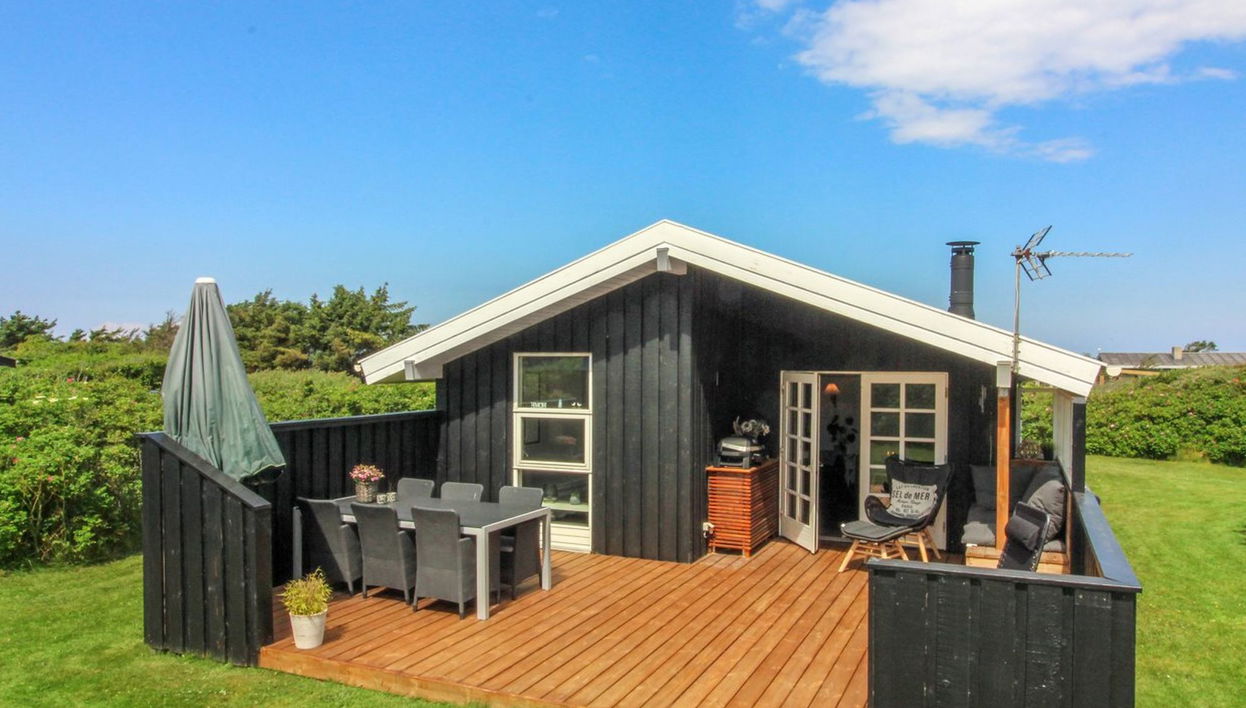 Einfamilienhaus, Baujahr 1986. 200 m vom Meer. Zur Alleinbenutzung: naturbelassenes Grundstück 1'575 m2. Terrasse (28 m2), Kinderspielplatz (Schaukel). Im Hause: Waschmaschine. Parkplatz beim Haus. E-Ladestation. Lebensmittelgeschäft 4 km. Der Besitzer akzeptiert keine Jugendgruppen.