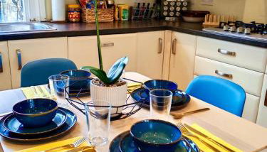 Diese Ferienwohnung ist versehen mit 1 Schlafzimmer, Flachbild-TV, einem Essbereich, einer Küche mit einem Ofen und einem Wohnzimmer.