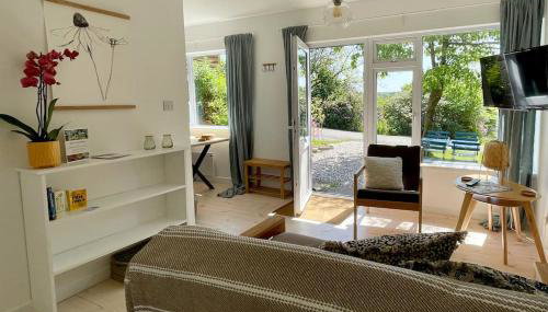 Dieses Ferienhaus mit einer Terrasse und Gartenblick bietet 1 Schlafzimmer, ein Wohnzimmer, einen Flachbild-TV, eine gut ausgestattete Küche mit einem Kühlschrank und einem Ofen sowie 1 Badezimmer mit einer Dusche. In diesem Ferienhaus werden Handtücher und Bettwäsche zur Verfügung gestellt.