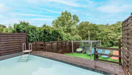 Die Unterkunft Casa piscina - 10km Lloret de Mar ist gelegen in Maçanet de la Selva, 28 km von Bahnhof von Girona entfernt, und bietet einen Balkon, einen Garten und kostenloses WLAN.