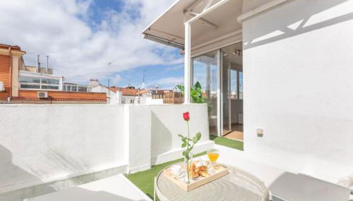Günstig gelegen im Herzen von Madrid, bietet die Unterkunft Apartamento Ático Las letras - Alojamiento de temporada Stadtblick und eine Terrasse.