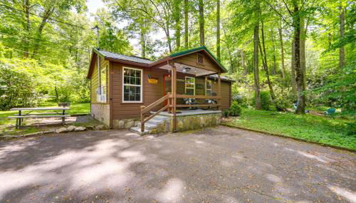 Die Unterkunft Pet-Friendly Creekside Cabin with Pool Access!, die in Maggie Valley gelegen ist, 27 km von Harrah's Cherokee Casino Resort und 47 km von Eisenbahn Great Smoky Mountains Railroad entfernt, besticht durch kostenloses WLAN und eine Klimaanlage.