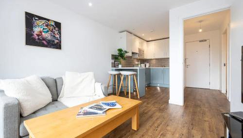 Die Unterkunft The Withington loft- Close To Uni's & Hospitals ist versehen mit 1 Schlafzimmer, einer Küche mit einem Kühlschrank und einem Ofen, einer Waschmaschine und 1 Badezimmer mit kostenlosen Pflegeprodukten und einem Haartrockner. In dieser Ferienwohnung werden Handtücher und Bettwäsche angeboten.