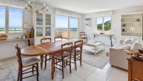 Gelegen in Mandelieu-la-Napoule, bietet die Unterkunft Le Plaza - Sea view - Car park - Swimming pool - Tennis court eine Terrasse mit Stadtblick und Meerblick sowie einen ganzjährig geöffneten Außenpool, einen Fitnessraum und eine Sauna.